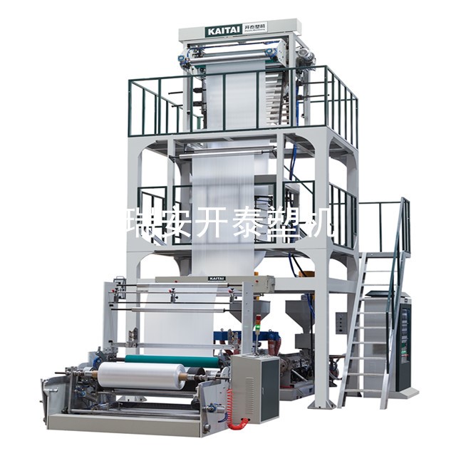 三层共挤A+B+A吹膜机,不论是生产HDPE材料还是LDPE材料,都有着独特的优点。通过多层共挤改善了薄膜的物理强度,用一台主机供里外层料,可以减少一台主机的配置,同时达到降低成本,节能低耗的目的。